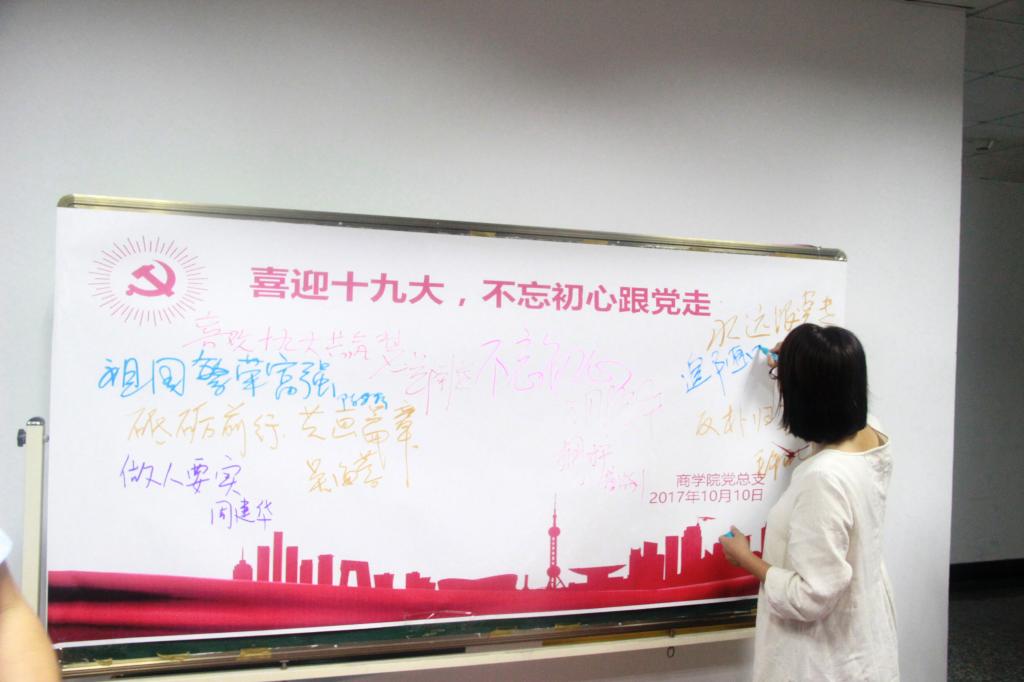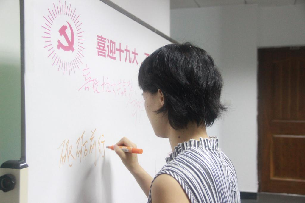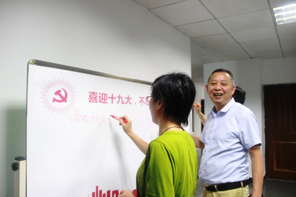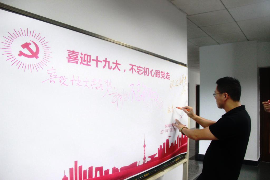 昨日,公司党总支组织开展了“喜迎十九大”主题党日签名活动。院领导班子成员、党总支委员、各教工支部书记等教师代表在“喜迎十九大,不忘初心跟党走”签名版上畅所欲言,写下了对祖国母亲的深深祝福。