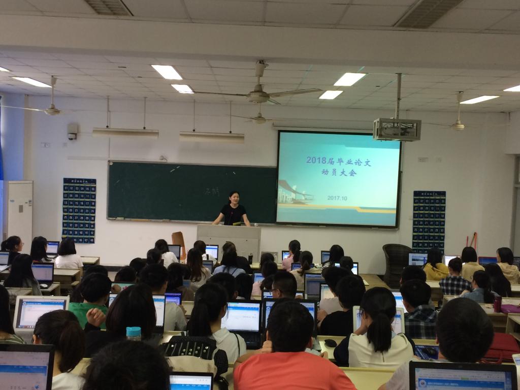 2017年10月19日15时20分,3044永利国贸系2018届毕业论文动员大会在北3-401教室顺利召开。本次动员大会由国贸系马媛老师主持,14国贸本和16国贸专升本班级的员工参加了本次大会。