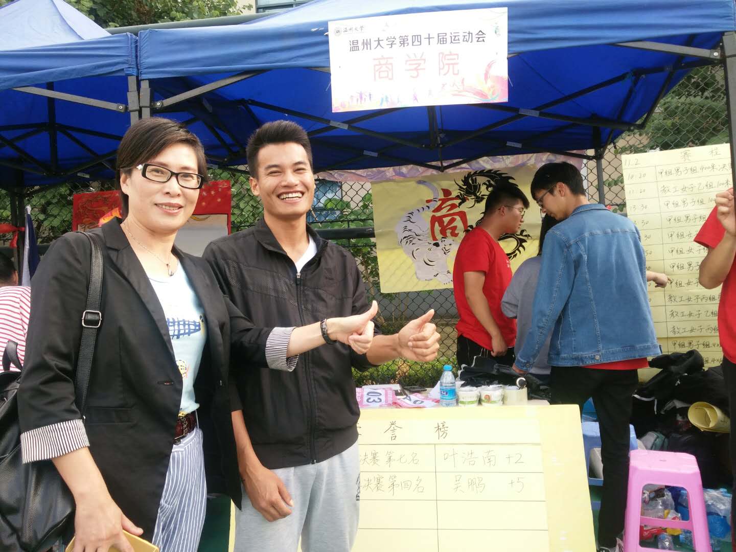 11月2日,运动会的第一天,郑彩莲书记和刘开练副书记先后来到后方操场大本营给工作同学和运动员以亲切的慰问。桂花飘香,虽阳光炽热但大家依旧热情高涨,运动会正如火如荼地开展着,同时大本营也在条不紊的进行后勤工作。