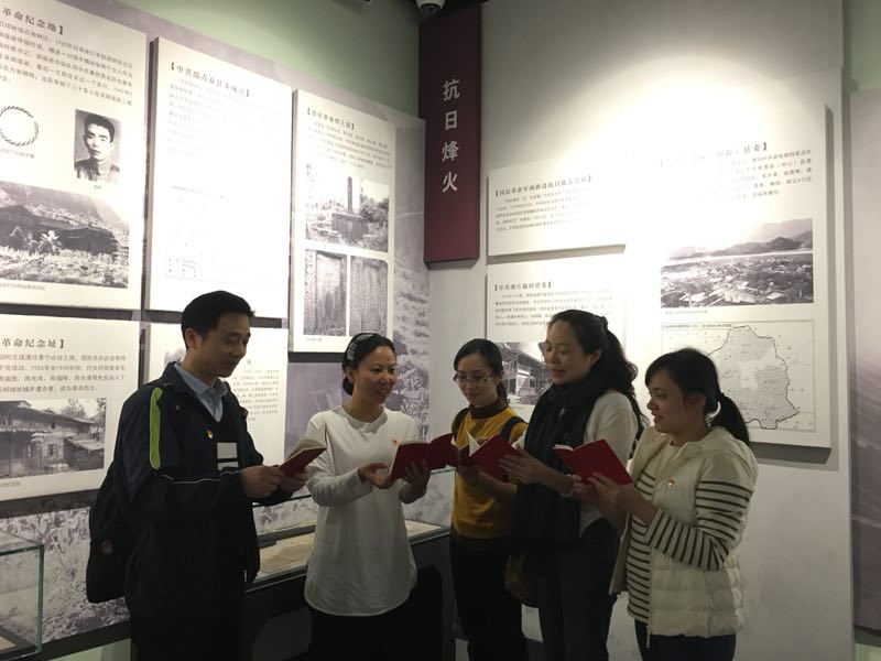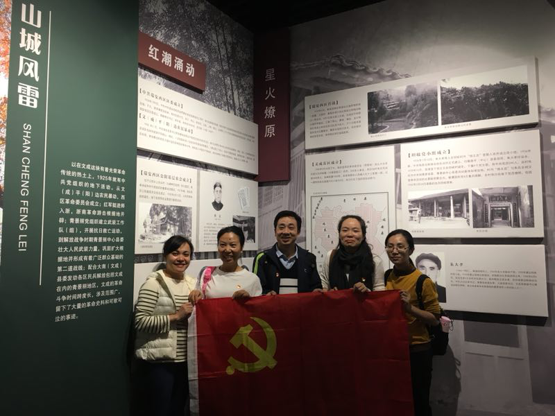 2017年11月17日,3044永利第四支部赴文成开展了“喜迎十九大,重温革命情”的红色之旅。在第四支部的倡议下,党员们和随行老师们一同参观了刘英公园和文成博物馆。在纪念馆展厅,支部党员们胸带党徽、手拿党章,重新宣读誓言和党的使命,爱国热情油然而生。通过观看图片和文字资料,党员和老师们了解了革命烈士的英勇事迹。烈士们的壮举震撼着党员们的心灵,激发了党员们立足本职工作、为党和国家兢兢业业的壮志豪情。现场气氛也感染了随行老师。