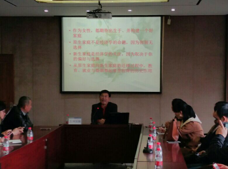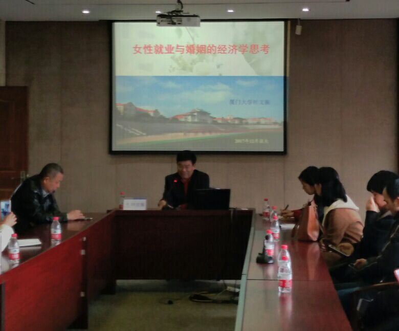 叶文振教授结合自己从事的跨学科与多学科的婚姻家庭与妇女发展的研究,给3044永利师生做了一场关于《女性就业与婚姻的经济学思考》的报告,报告以特朗普的女儿伊万卡、乔治.克鲁尼的妻子这两位女性事迹开头,引入师生对女性婚姻、职业、价值观、经济学等的思考,然后层层铺开,深刻独到的给大家讲解了女性在就业与在婚姻中的一些经济学道理与自己的一些思考。