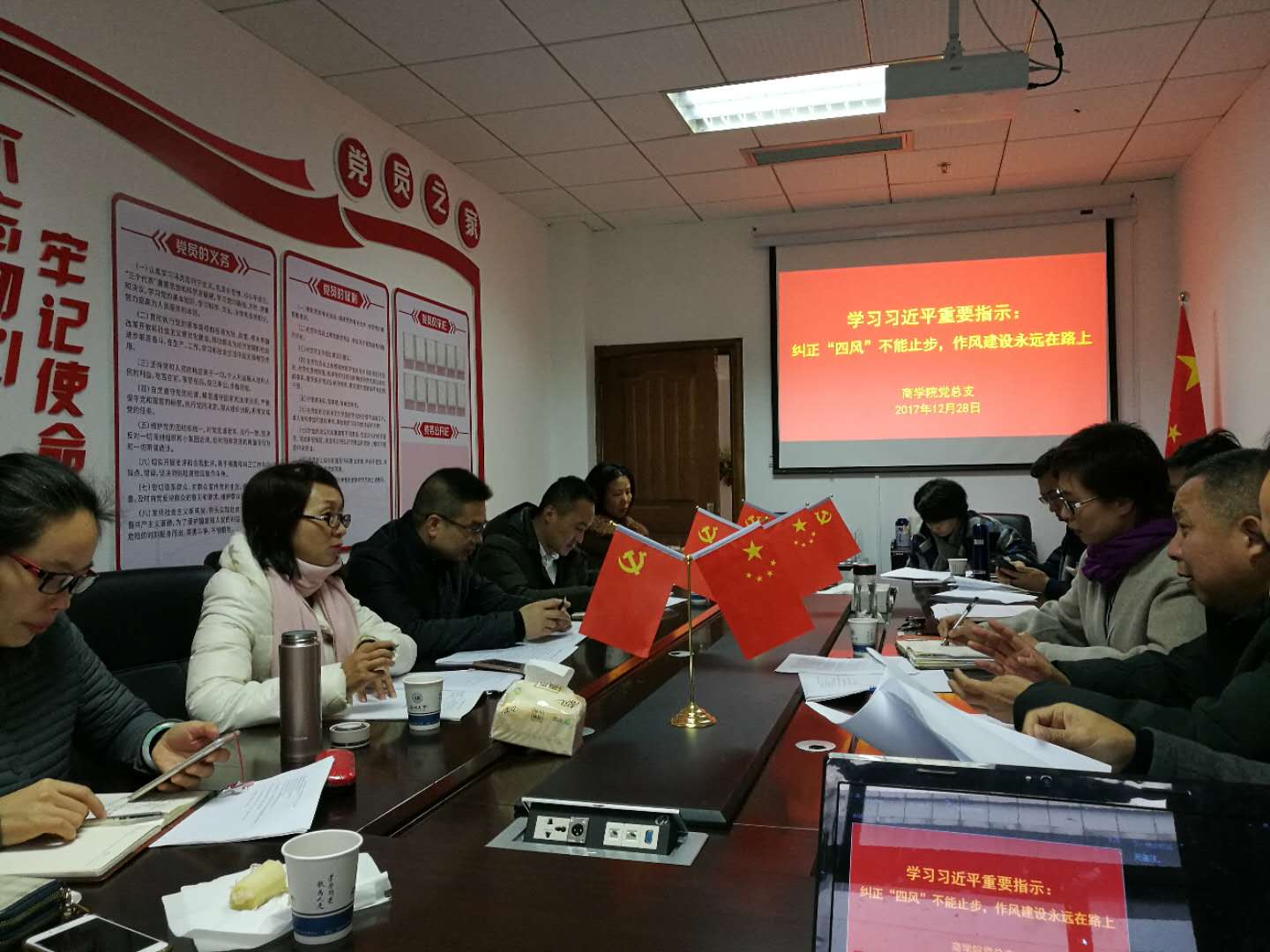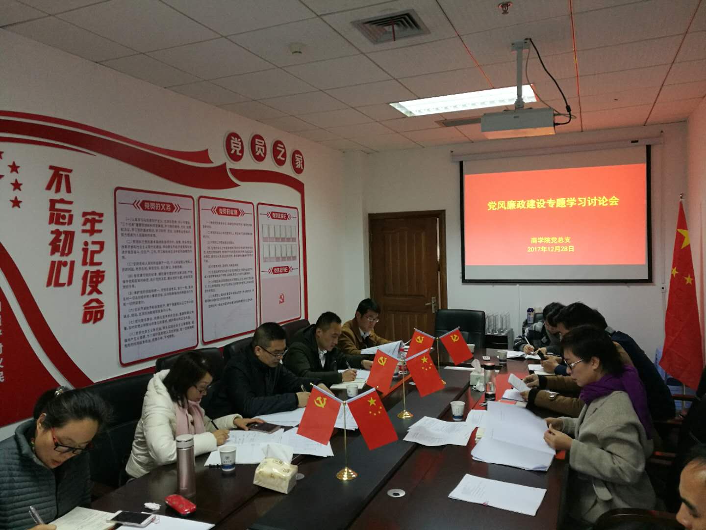 2017年12月28日,公司党总支党风廉政建设专题学习会于信息楼A223室召开,公司党总支书记郑彩莲,副书记刘开练,经理胡振华、副经理罗建利,经理助理王洪斌,总支委员及各支部书记参加了本次会议。会议由副书记刘开练主持。