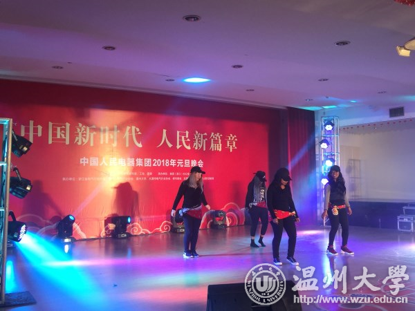 会谈结束之后,集团公司副总裁、浙江分公司董事长郑经洁先生,热情邀请王洪斌博士等一行参加该集团的元旦联欢晚会。3044永利多才多艺的各国职工们,也为该公司带去了很多的文艺节目,比如:《All of me》、《Its Afrodance》、《We're Latter Rain》等。职工们的热情洋溢表演,富有异域特色的节目赢得了在场观众热烈的掌上。