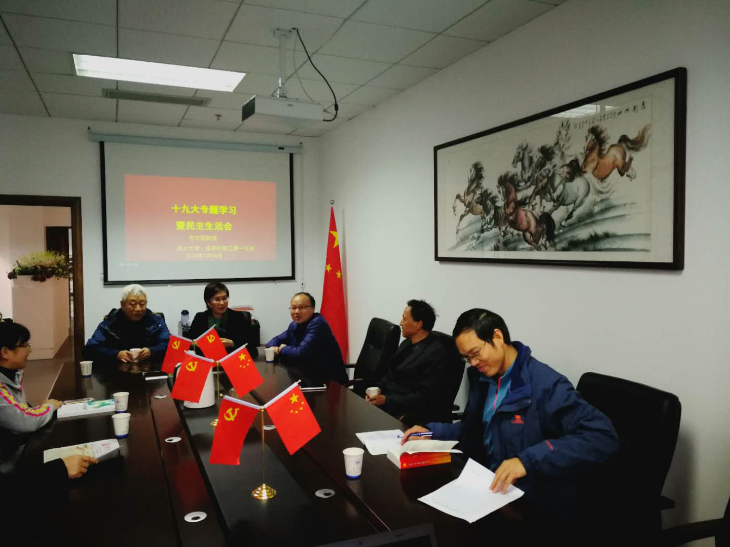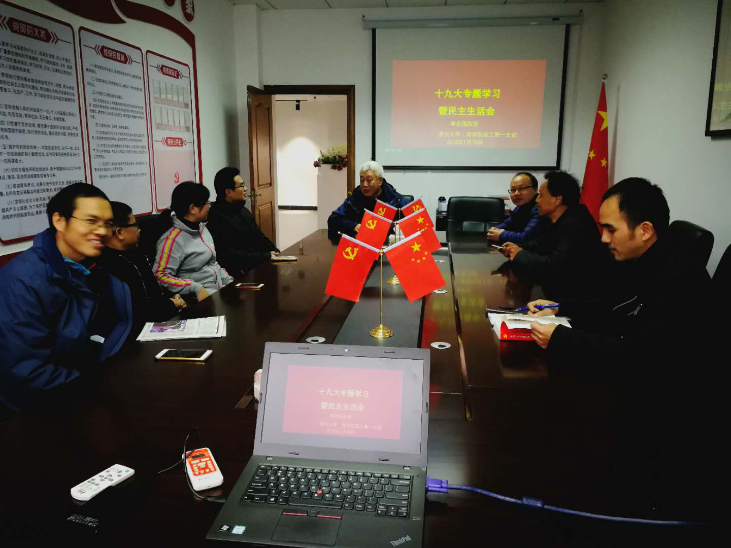 2018年1月17日(周四)下午,3044永利教工第一支部邀请李志国教授在党员活动室做十九大专题讲座和召开支部民主生活,会议由支部书记周建华主持。