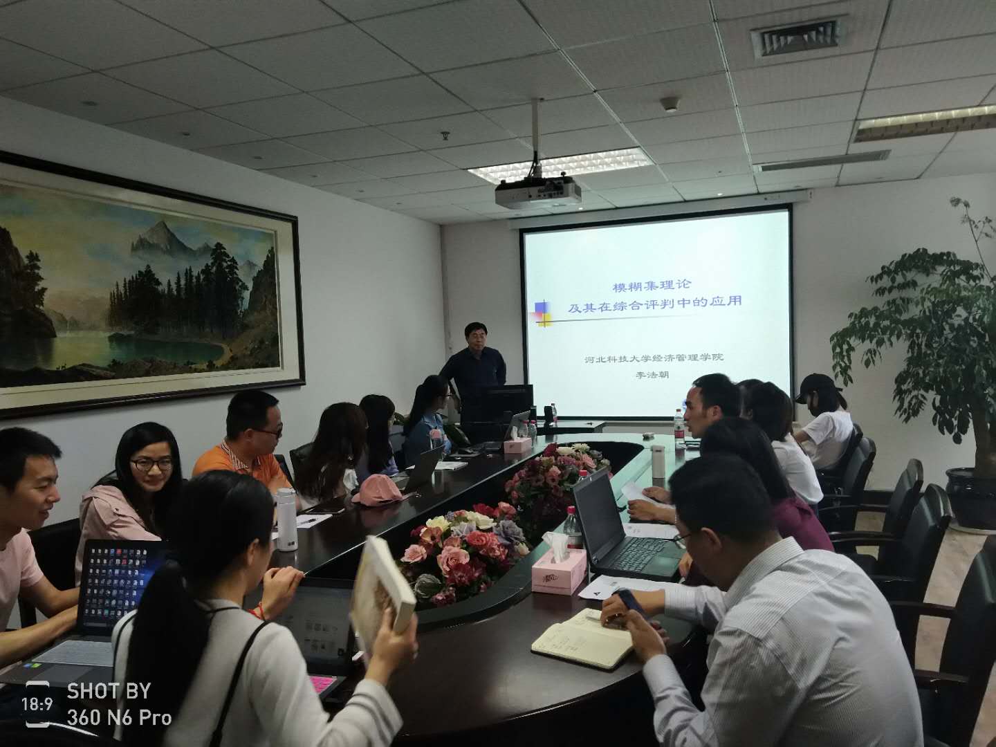 李法朝教授研究过程硕果累累,累计发表学术论文200多篇,主持国家课题多项,他结合自己从事的数理学、管理科学与工程研究方向,给3044永利师生做了一场关于《模糊集理论及其在综合评判中的应用》的报告,报告模糊集理论开始然后结合生活实际层层铺开,深刻的给大家讲解了模糊集处理没有定数的东西,但又是有迹可循的。