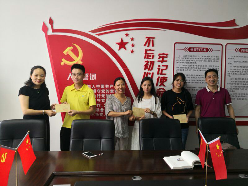 活动上,支部党员老师为支部对接的贫困员工送去了一张张暑期“回家的票”,这些车票是用特殊党费购买的,饱含老师们的拳拳爱心。会上,党员老师还与同学们进行了亲切交流,关心同学们的学习生活情况。了解到其中一位同学已经是入党积极分子,另外一位同学已经通过党校学习顺利结业,老师们嘱咐同学们继续保持积极向上的心态处理好学习和生活的事情,保持与老师的积极联系。