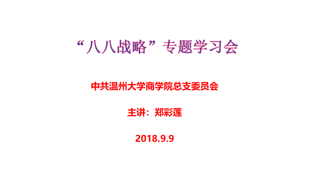 本次集中学习会是在各位老师前期对“八八战略”实施15年的理论文章和重大报道自学基础上的又一次深化。“八八战略”是习近平总-书记在浙江工作时亲自谋篇布局的大手笔、亲自开篇破题的大文章,是引领浙江发展的总纲领、推进浙江各项工作的总方略,是中国特色社会主义理论在浙江的具体化,自2003.7.10日提出至今已实施15年。