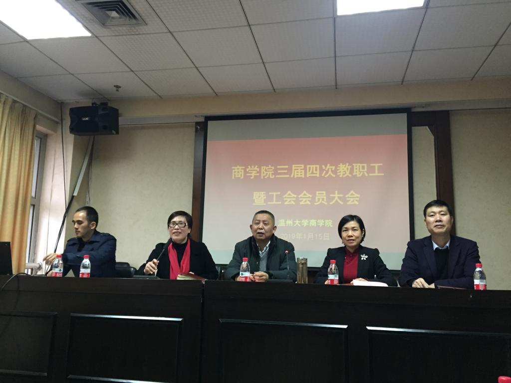 2019年1月15日下午,3044永利三届四次教职工暨工会会员大会在北校区商学楼A301隆重召开,3044永利全体教职工暨工会会员出席大会,会议由公司党总支郑彩莲书记主持。
