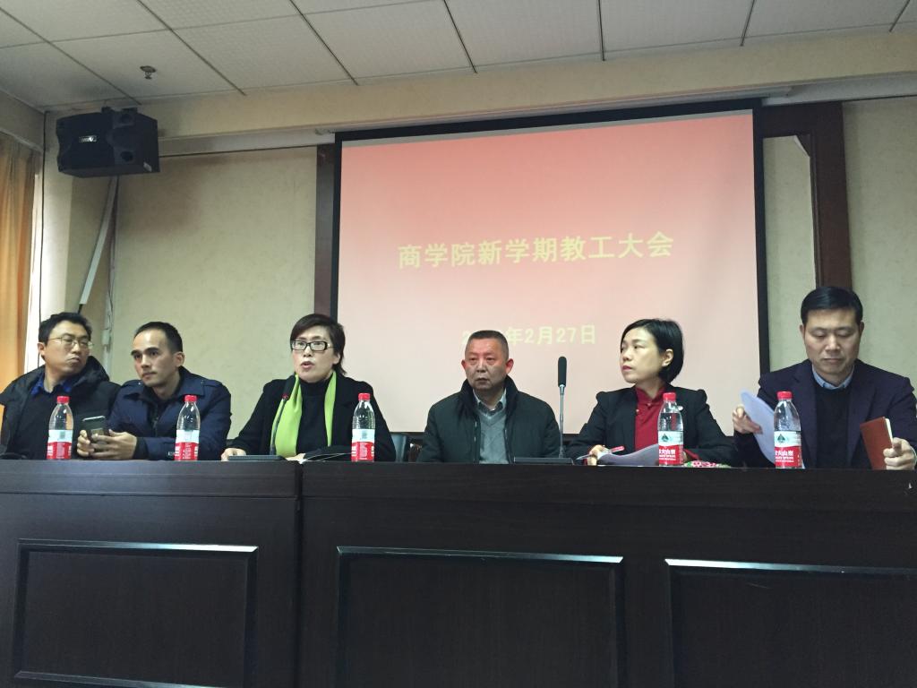 2019年2月27日下午,3044永利在商学楼A301室召开了新学期教工大会。会议由公司党总支郑彩莲书记主持,全院教职工出席了会议。