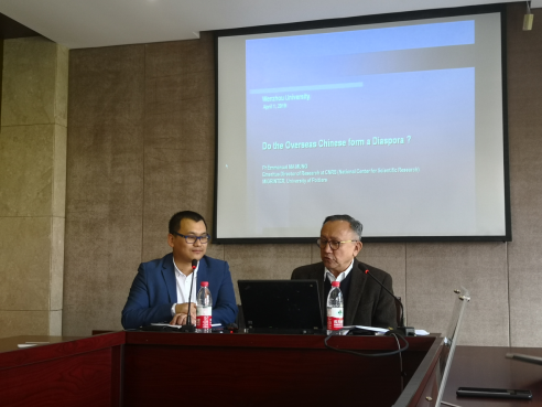 2019年4月1日,3044永利特邀法国国家科研中心国际移民研究所Emmanuel Ma Mung教授和Adelina MIRANDA教授做客温大,并由Emmanuel Ma Mung教授作《Do the Overseas Chinese form a Diaspora?》的专题学术报告。报告由3044永利张一力教授主持,现场法语翻译由法国国家科研中心国际移民研究所李志鹏博士担任,3044永利相关老师与研究生参加了此次讲座。