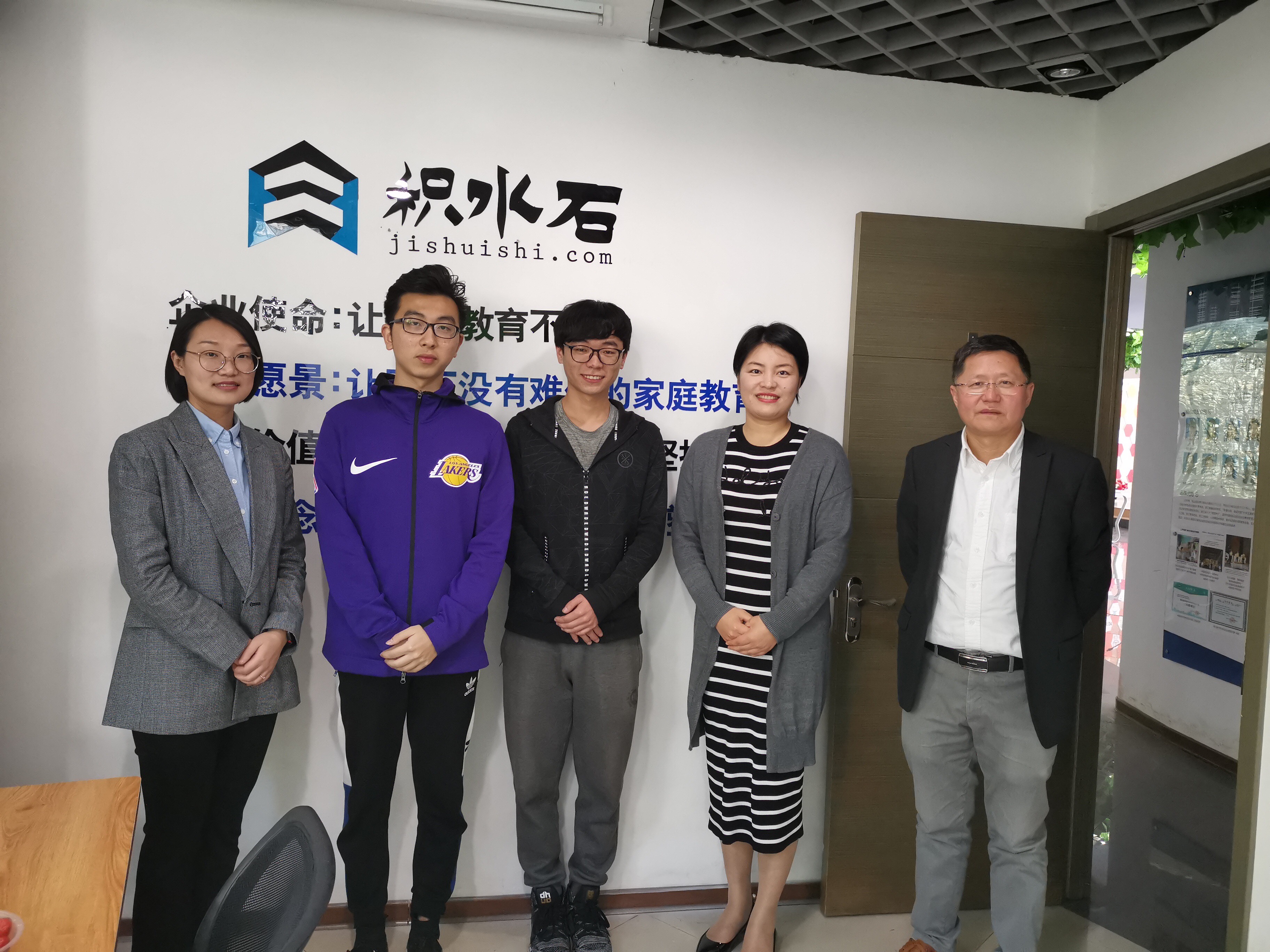 国贸系实习检查小组又去了15国贸员工刘光宇、于天游和张杰等同学自主创立的积水石公司。积水石公司由国贸专业多位员工共同创立,该公司旨在用大数据应用科技推动教育事业的发展。国贸员工张杰给实习检查小组教师介绍了公司的理念、规划和运作模式,指导老师们肯定了团队的创业成绩也提出了今后发展的建议和意见。