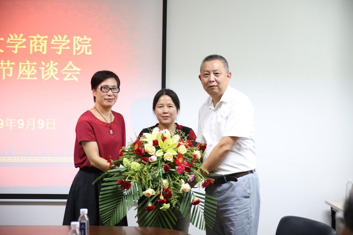 座谈会后,郑书记和胡经理给台胞林怡芯老师赠送鲜花,送上特别的祝福;随后,老师们合影和视频留念。教师节座谈会在欢乐祥和的气氛中结束。