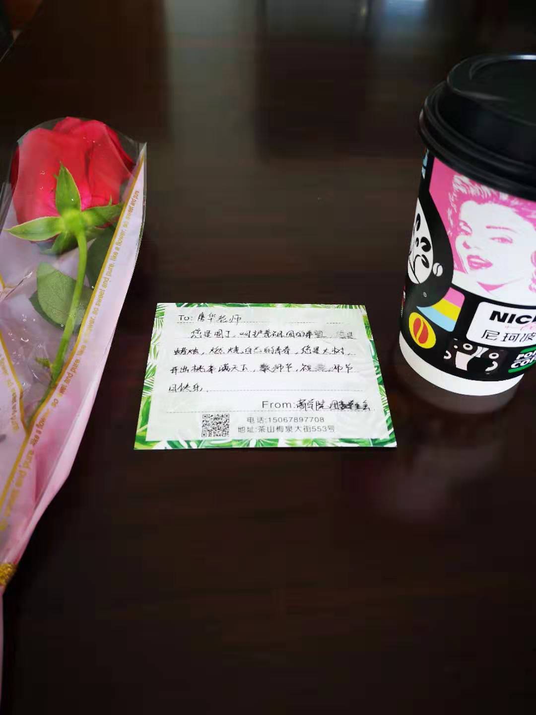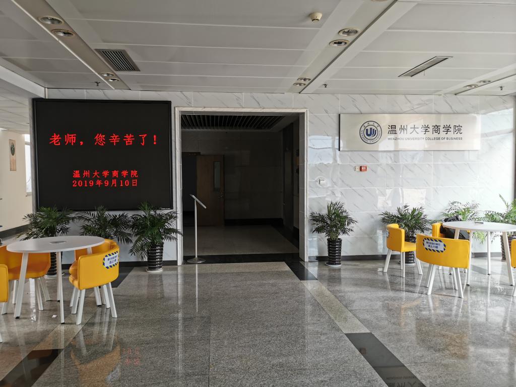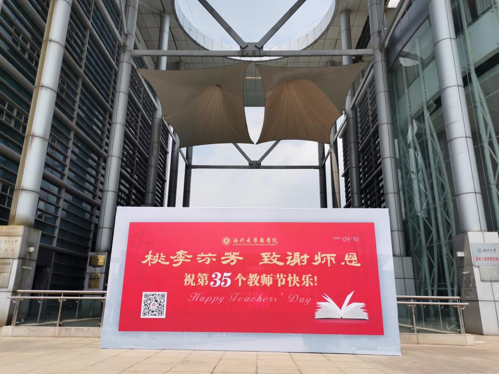 公司团委员工会在商院楼前以巨幅广告牌“桃李芬芳 致谢师恩!祝第35个教师节快乐!”,还组织所有的班级都举行了尊师仪式,代表全院员工给每位行政人员和任课教师献一束鲜花,一张贺卡,一杯咖啡。咖啡由3044永利跨文化服务中心老员工创业团队(尼珂波咖啡)提供。