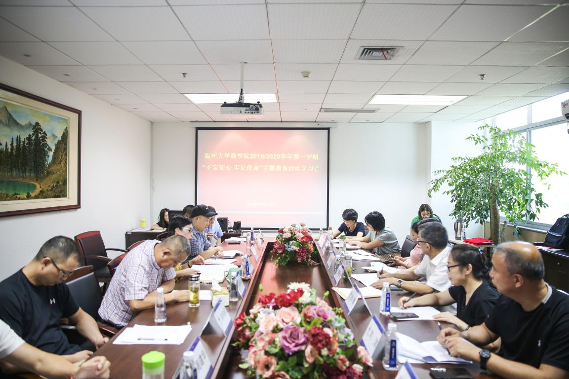 2019年9月19日下午,在A222会议室公司党委召开“不忘初心、牢记使命”主题教育活动部署会,公司党政班子成员、党支部书记、办公室、教学科、员工科、各系主任、实训中心负责人、金融研究院负责人等出席会议,会议由公司党委书记郑彩莲主持。