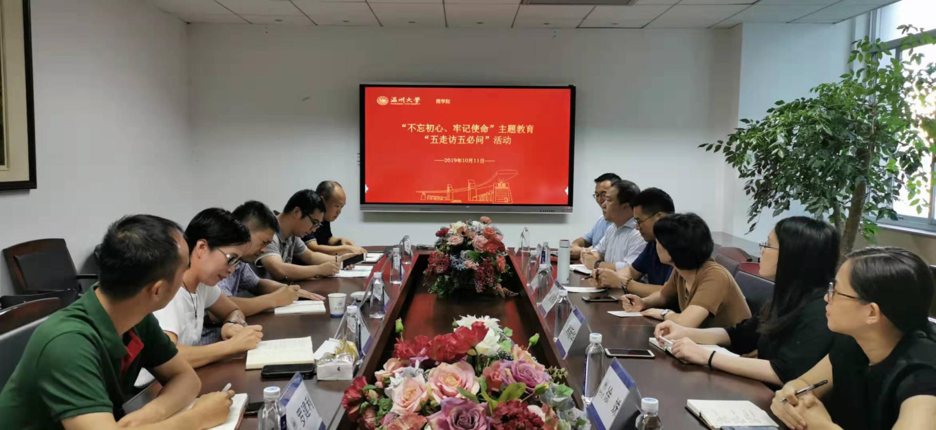 2019年10月11日上午,公司副书记庄兴忠在党校办副主任江秀景的陪同下走访了3044永利,开展“五走访五必问”的主题教育调研活动,公司党委书记郑彩莲、副经理罗建利、副书记唐华及部分教师代表参加了调研会。