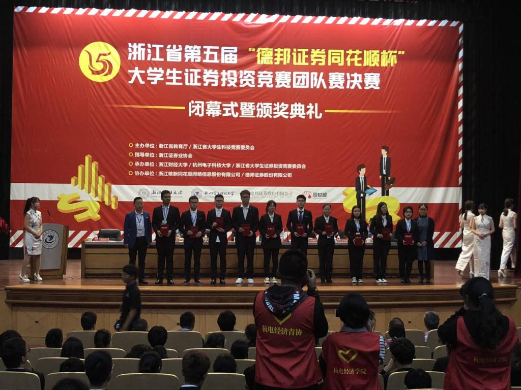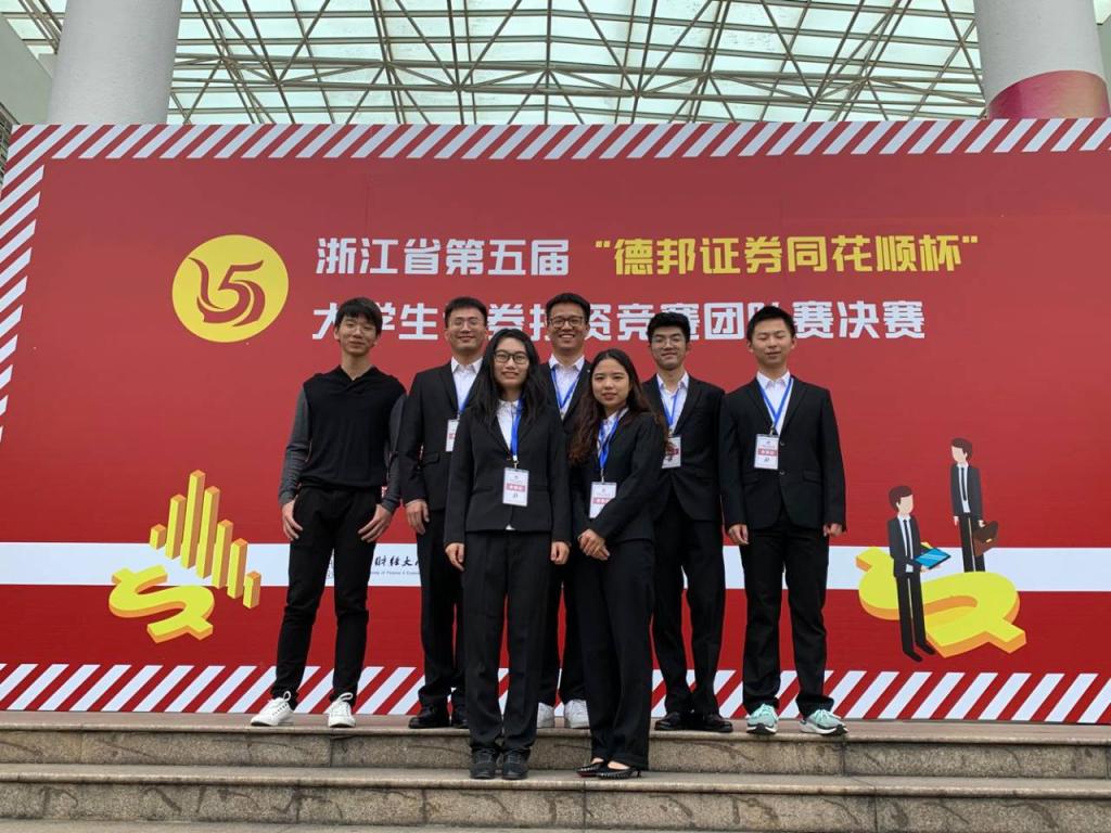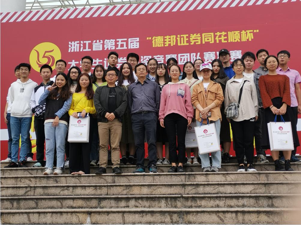 2019年10月26日,公司学子前往杭州参加浙江省第五届“德邦证券同花顺杯”老员工证券投资竞赛团队赛决赛答辩。在与全省多所高校的激烈角逐中,公司学子最终创下了一等奖1项、二等奖8项、三等奖2项的历史佳绩。
