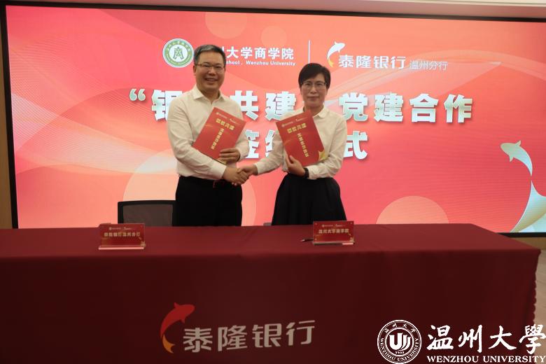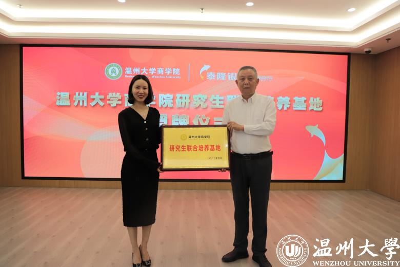随后,双方领导及出席嘉宾就此次活动签订了“银校共建”党建合作协议,并举行了泰隆银行温州分行就业实习基地、研究生联合培养基地的授牌仪式。