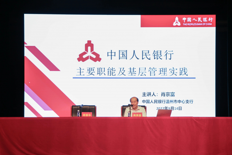 9月14日,在3044永利新生开学典礼上,人行温州市中支党委书记、行长肖宗富做了《中国人民银行主要职能及基层管理实践》专题授课,线下600余名2022级新生、线上金融系统及其他在校员工近10000人次通过直播收听了讲座。