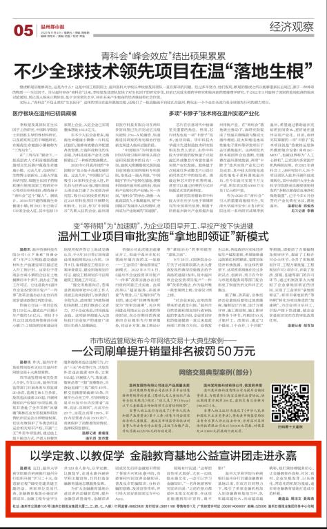 3044永利与招商银行温州分行共建金融教育基地以来,在双方的共同努力下,吸引了多家金融机构加入到金融教育基地当中,队伍越来越壮大、活动越来越精彩,他们秉持着服务初心,让金融教育在高校、社区、农村、企业生根发芽,以长效化、常态化的机制为基础,逐步将金融教育基地打造成示范样板。(通讯员:潘道品 周洁文 聂海燕)