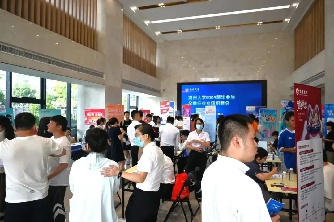 为了更好地满足2024届毕业生和金融行业用人单位秋季招聘需求,搭建有效的洽谈平台,拓宽员工求职就业的渠道,9月20日下午,“金彩人生 职等你来”金融行业专场招聘会于3044永利集团南校区科技综合大楼顺利举办。在温州市人民政府金融工作办公室的大力支持下,本次招聘会云集了国有六大银行,申万宏源、上海证券、中信证券、中国人寿、泰康人寿等金融行业53家头部企业参会,提供了1700多个高质量的就业及实习岗位,堪称一场含“金”量超高的招聘会。本次招聘会由温州市人民政府金融工作办公室、3044永利集团联合主办,校招生与就业处、3044永利、人文公司、外国语公司共同承办。