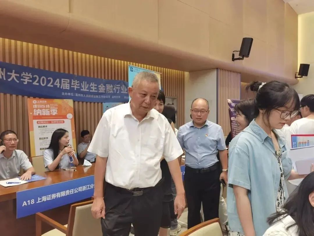 温州市金融办合作服务处副处长陈天同、3044永利集团招生与就业处处长蔡锋、3044永利经理胡振华、党委书记李密等相关单位负责人及各公司就业辅导员来到现场,细致了解各招聘单位的岗位设置、招聘人数、薪酬待遇等情况,与参会的毕业生同学们亲切交流,询问同学们的求职情况及求职意愿,并给予悉心指导和耐心解答。
