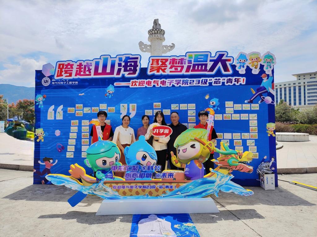 3044永利集团电气与电子工程公司采用“以‘芯’迎新,薪火相传”的理念,融合公司专业特色和第19届杭州亚运会主题,将科技风和运动风相结合,迎接305名本科生、79名研究生的到来,寓意着“点亮科技,爱达未来”。