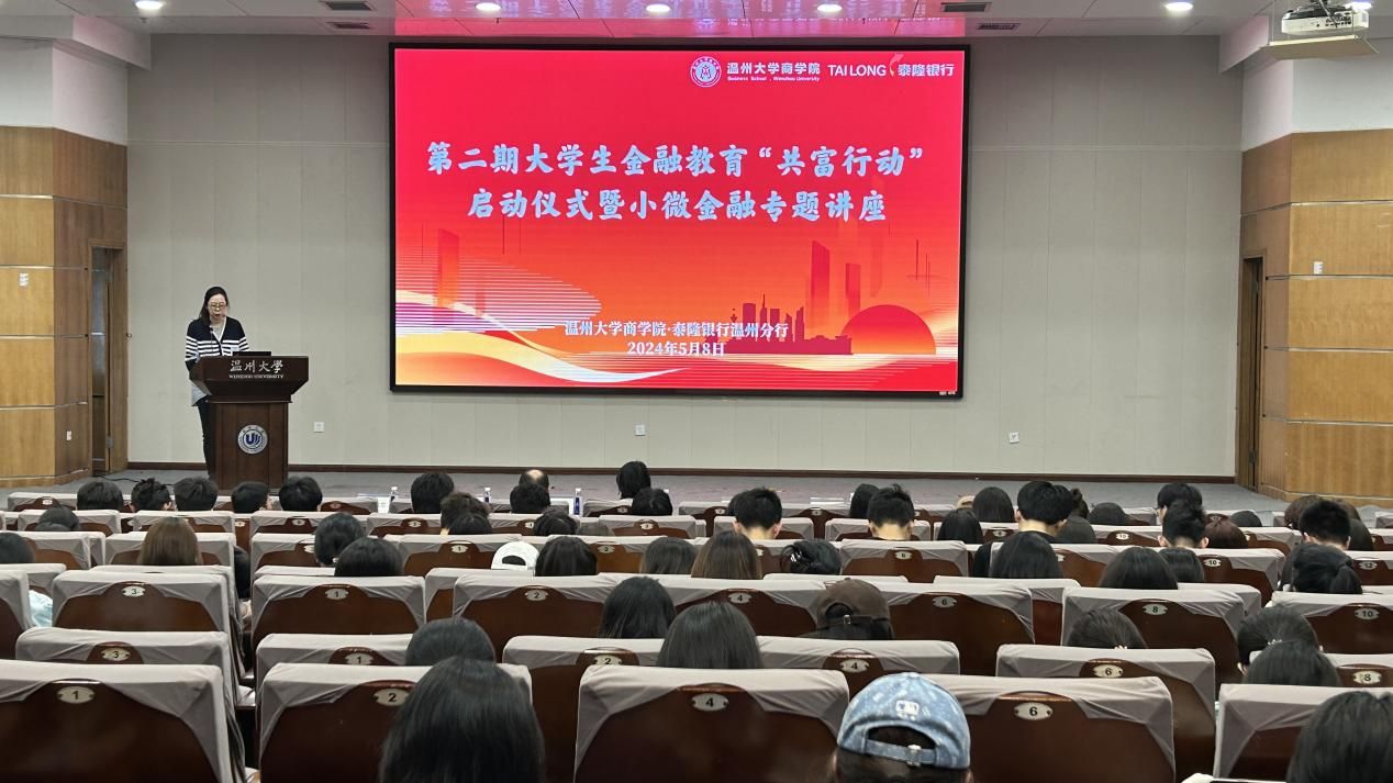 启动仪式上,银校双方为“共富行动”师生代表颁发聘书。泰隆银行温州分行工作人员为员工们作专题讲座“开启小微金融之门”,详细介绍了泰隆银行的雄厚实力、发展历程、发展方向、小微金融的特色以及泰隆银行“三品三表”“两有一无”以及“三三制”等助力小微金融发展的切实举措,帮助员工们加深对泰隆银行和小微金融的了解。