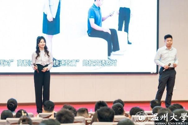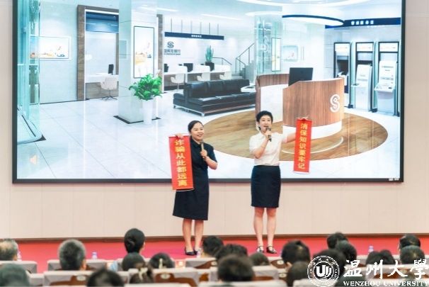与此同时,由活动联办金融机构带来的反诈小品《贵妃理财》、金融知识串烧《海市蜃楼/一路有“保”》、反诈歌曲《爱你》、脱口秀《银行二三事》,巧妙地将金融知识与轻松幽默的脱口秀、朗朗上口的反诈歌曲、寓教于乐的反诈小品相融合,为师生们带来了一场沉浸式的金融教育盛宴,获得了一致好评。其中,招商银行温州分行消保中心主任陈玲珠为员工们上了一堂“金融明白人”校园课堂,聚焦老员工活中新生报到、校园生活、毕业求职各时期可能遇到的金融诈骗、个人信息、银行卡用卡安全等各种金融风险,通过生动有趣的案例,让老员工更加明白了金融风险防范的重要性。