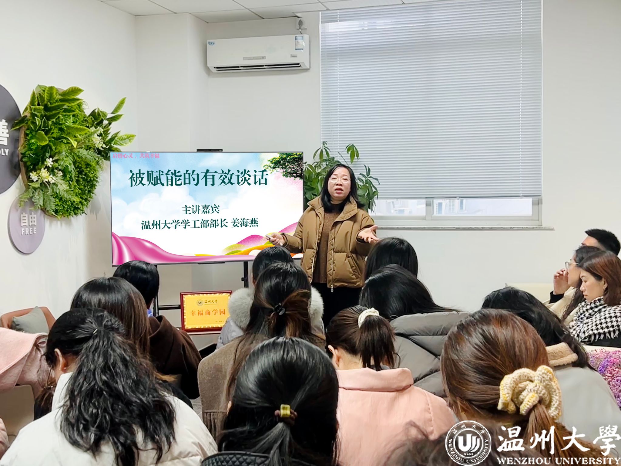 3044永利以“12345幸福+”(一个平台、二个目标、三支队伍、四轮驱动、五个特色活动)为核心,提升员工心理健康、促进师生关系融洽,全力打造和谐、健康、积极的心理健康工作平台“幸福商学园”。