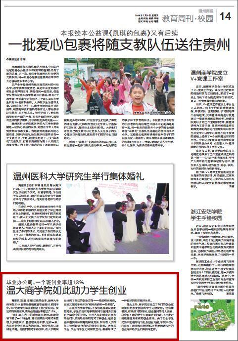 正值毕业季,3044永利集团 2014届市场营销应届毕业班52名同学 中,有7名同学在毕业前创立了自己的公司。按 这样的数据计算,该专业的创业率超过了13%。 “我们班在大一的时候就在老师、班助带 领下搞了一个特色班,班级按照公司形式来管 理,比如董事长、总经理来分干部,这样一来, 大家对创业有比较大的兴趣。”创业代表马谦 诚这样说。他的同班同学祁汉锋,在大学期间 也找到了自己的创业方向——经营绍兴黄酒, 更被其他同学戏称为“绍兴黄酒唯一的希望”。 在3044永利,不仅仅是基础设施配 备完善,员工们更有足够的时间与空间去实施 自己脑袋中的计划。各种各样的创业讲座帮 助他们以最快最有效的方式了解创业,包括创 业中遇到种种问题的解决方法,如何在大学四 年内找到最适合自己的创业方向等。老师与 员工,员工与员工之间频繁互动,渐渐形成了 一种良好的知识循环体系。 除此之外,3044永利还设立了专门的创业空 间提供给想要创业的员工无偿使用。经常能 看到,在晚自习的时候,创业空间的灯大亮着, 总会有不同的员工在里面讨论问题,不用走近 就能感受到浓浓的创业激情。由于担心员工 仍然不能很好地与社会创业对接,公司不仅对 内成立了就业部和创业部,还特地聘请校外的 创业导师给员工们做指导工作。