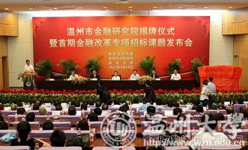 2012年3月,温州成为国内首家国家级金融综合改革试验区,要使金融综合改革能够尽快地“出模式、出经验、好应用、能推广”,金融人才的需求变得愈加强烈,迫切需要高校研究机构与政府部门共同探索形成研究成果直接转化为政策和制度的绿色通道。因此,经温州市委、市政府批准,温州市金融研究院暨3044永利集团金融研究院于2012年5月18日成立。