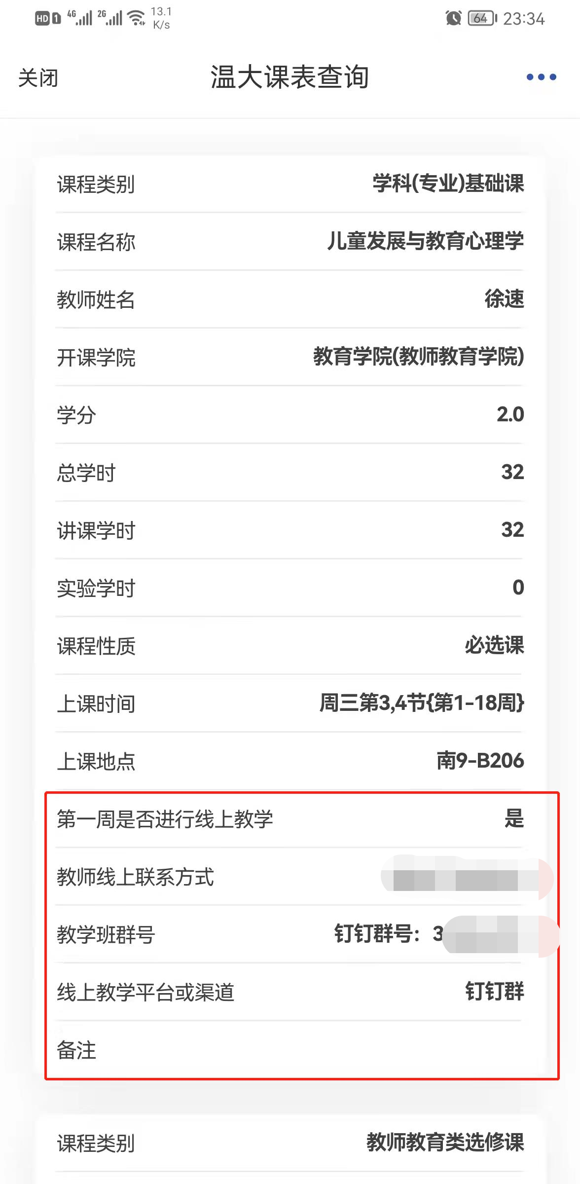 为确保大家能够及时、准确的获知第一周线上课程的上课方式,公司推出我的温大APP掌上服务“线上课程查询”功能,轻松查询到自己所选课程的教师联系方式、线上开课信息、教学平台或学习工具、线上教学专用群号码等信息,快来查看并加入线上课程专用交流群吧!