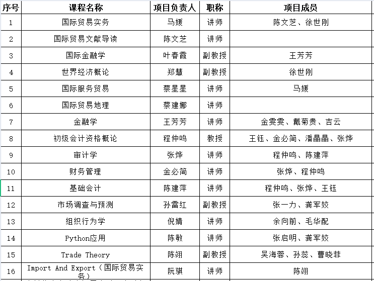 经公司专家评审,同意《国际贸易实务》等16门课程思政示范课程获得院级项目立项,现将评审结果予以公示,公示时间从2021年4月15—4月17日,如对立项名单有异议,请与教学科徐老师联系,联系电话:86680957。