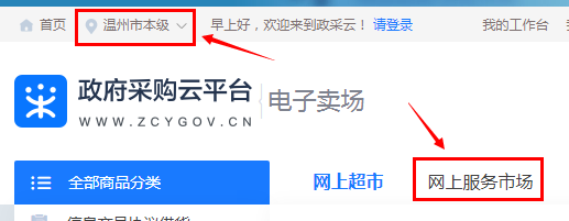 1.入围供应商可在政府采购云平台(https://www.zcygov.cn/)的“网上服务市场”栏目中查询,查询时注意左上角地域设置为“温州市本级”(见下图)。