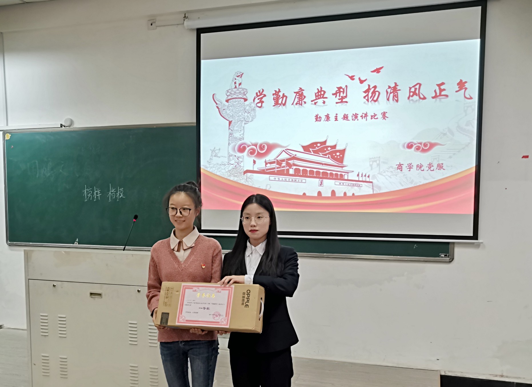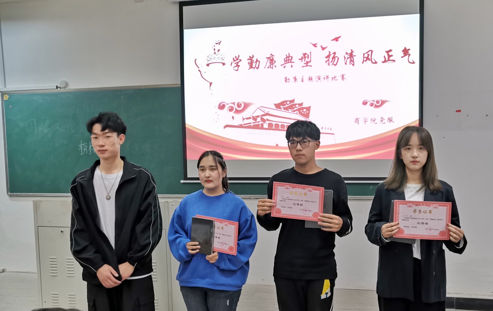 每位选手都紧紧围绕着勤廉这一主题,或深情回忆,或畅谈感想,或立足现在,或期许未来,以勤廉榜样事例呼吁老员工们习勤廉之风。演讲结束后,评委们对本次参赛的选手们的表现都给予了充分的肯定,并从着装的正式性、演讲结构的完整合理性、PPT的制作以及演讲技巧等多方面提出了一些建设性意见。最终经过激烈的角逐,丁冰冰同学获得一等奖,宋飞宇、陈月雅同学获得二等奖,韩前、江凌波、古丽扎提·于山江同学获得三等奖。