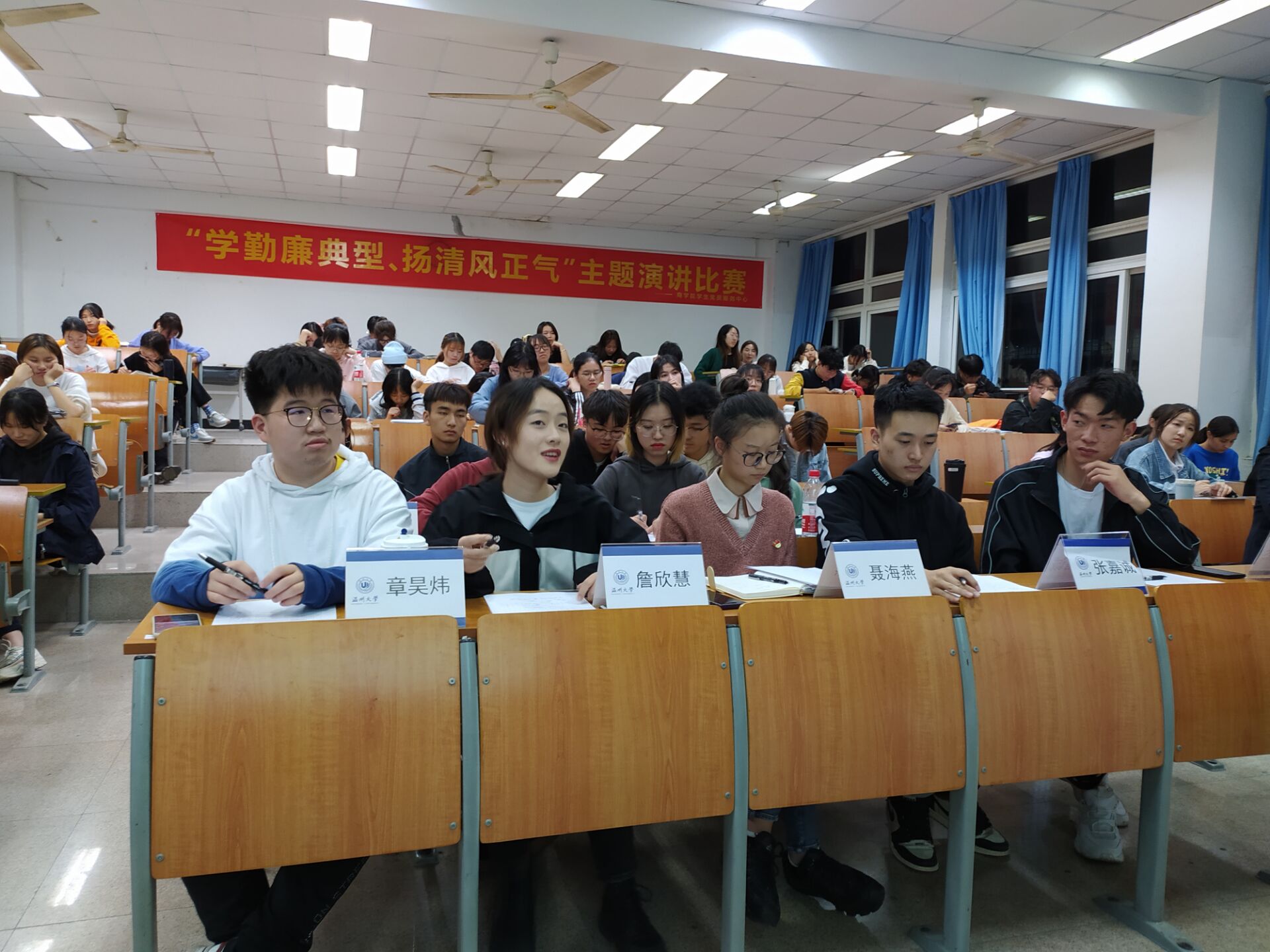 活动伊始,主持人介绍了举办本次活动的背景和目的,本次演讲比赛旨在广泛宣传勤廉典型的先进事迹,掀起向勤廉典型学习的热潮,放大勤廉典型的示范作用,建设以廉为荣、清廉文明的校园文化环境。