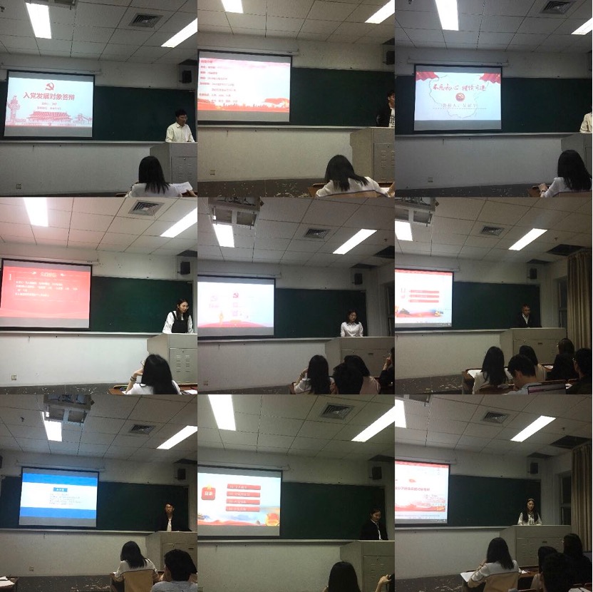 会议伊始,陈丹女同志针对本次答辩大会作了情况说明。十名积极分子首先按照抽签顺序依次个人答辩,从自我介绍、入党动机、对党的认识、学习工作等方面进行了充分展示。在展示过程中,各位积极分子均展示良好的精神面貌,表露了热切的入党愿望。虽然关于入党动机的口头表述,每位同志都不尽相同,究其本质无一例外地展露了“全心全意为人民服务”的热枕。他们以加入中国共产党为荣并志愿为共产主义事业奋斗终身。青年兴则国家兴,青年强则国家强,中国共产党的光辉魅力吸引着无数青年投身其中,中国共产党带领下的富强民主鼓舞中国青年为之奋斗。
