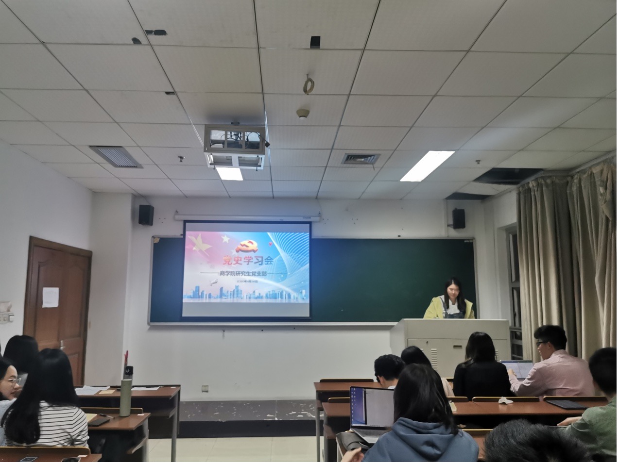 答辩大会圆满结束后,支委组织并进行了以“渡江战役”为主题的党史学习会。从诗句“钟山风雨起苍皇,百万雄师过大江”讲起,分别通过视频学习与文章领读,生动还原了渡江战役42天全过程各个阶段,开展了一场别开生面的党史教育。在自由讨论环节,各与会党员就“渡江战役”历史作用与精神鼓舞开展了深入交流。大家一致认为,渡江战役的圆满成功,推动国民党蒋介石集团二十二年的反动统治最终被推翻,为解放华东全境和向华南、西南地区进军创造了重要战略基础,预示了百余年民主革命终将在中共共产党带领下取得成功,是历史上浓墨重彩的一笔。同时,在新的历史交汇期,青年党员更应将其中“为人民谋福祉,为民族谋复兴”的精神内核加以吸收转换,并运用于日常工作学习中,深刻理解习近平总书记所说“关键时刻冲得上去、危难关头豁得出来,才是真正的共产党人”。