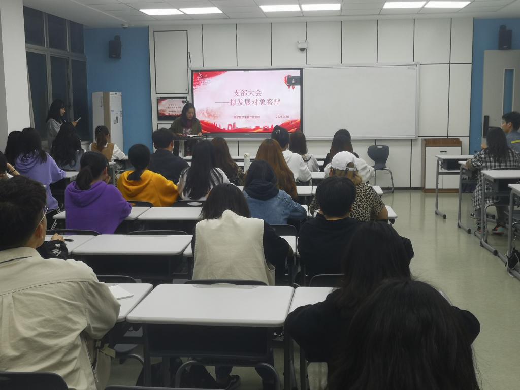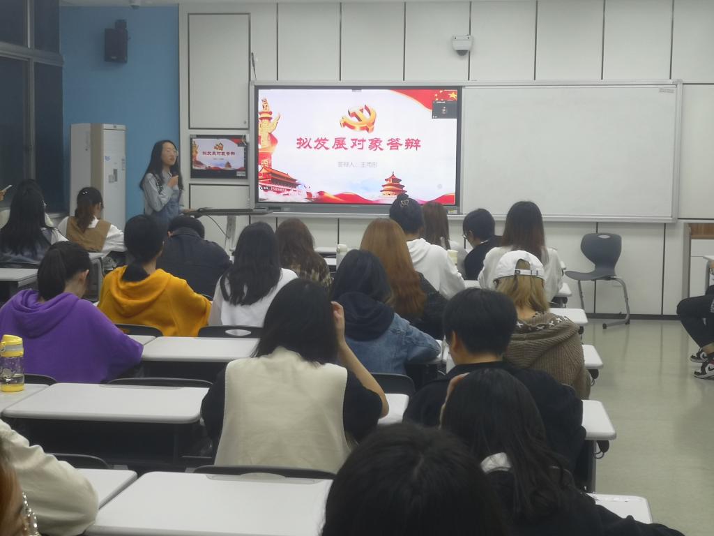 会议议题是讨论许诺、杨周琼、米小梅等10位入党积极分子的进一步发展问题。首先,金瑞老师进行了本次大会基本要求、注意事项的介绍。其次,各位入党积极分子逐一上台汇报本人情况、现实表现,以及对党的认识、入党动机等问题。接着,党员同志们就党的基本理论知识、时政新闻等进行提问,对参加答辩的每一位入党积极分子进行了解和考察。最后,与会党员积极酝酿讨论,充分发表意见,统一投票表决,并将在会后结合本次答辩情况、义工实践活动以及参考体系打分等情况推选出拟发展对象。