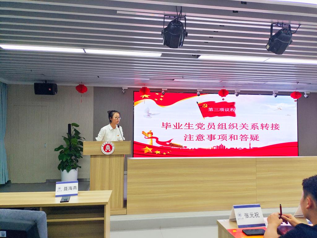 紧接着,聂海燕老师为大家讲解毕业生党员组织关系转接相关手续的办理和注意事项,对组织关系介绍信填写、毕业生党员组织关系转接要求、组织关系转接中常见的问题等进行了一一讲解,同时对同学们的疑问进行了细致的解答。