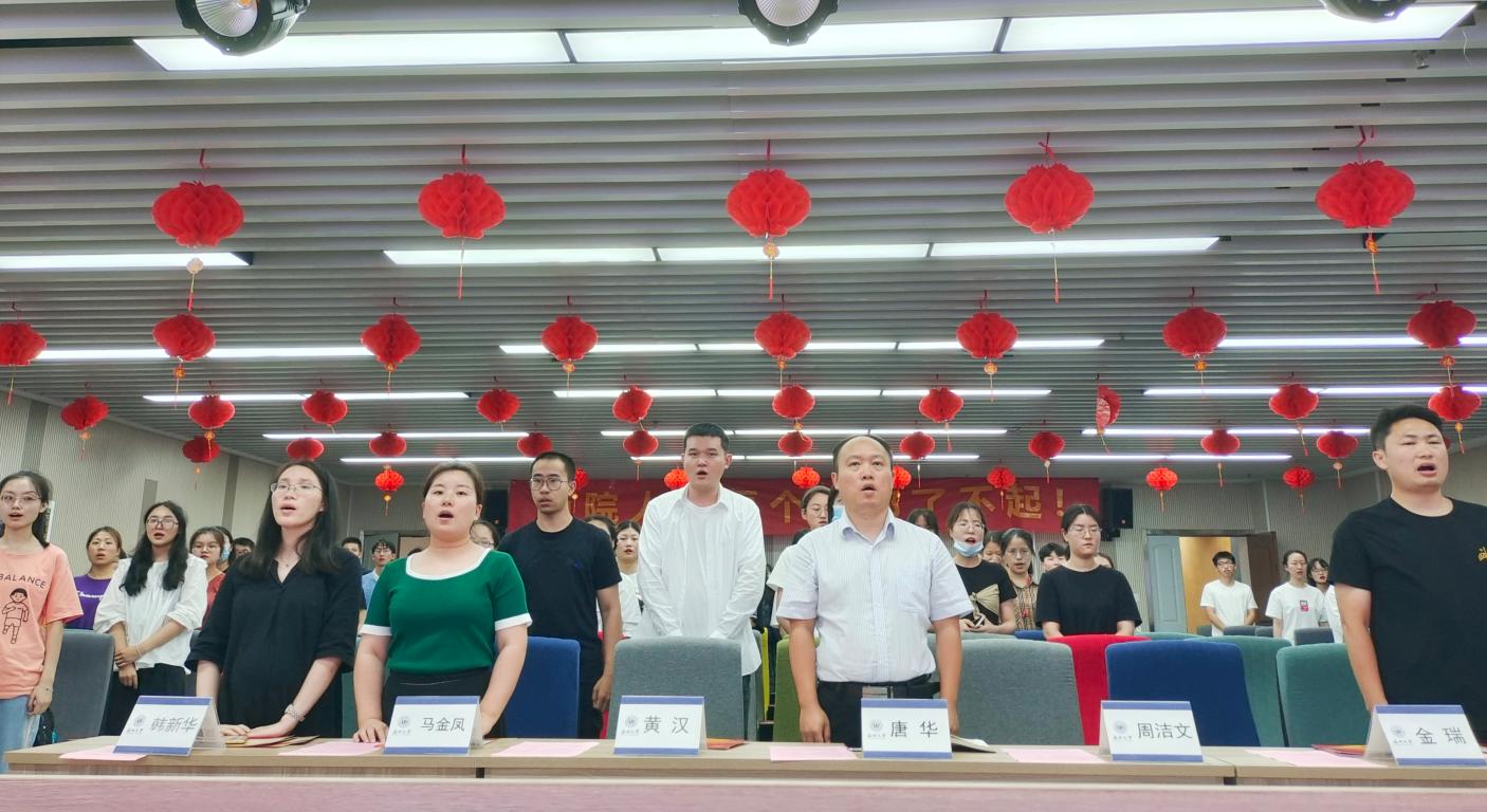 毕业生党员离校教育大会在庄严的国歌声中拉开帷幕。典礼伊始,全体师生起立,奏唱国歌。随后,毕业生党员代表袁健同志带领全体毕业生党员重温入党誓词,提醒每位毕业生党员时刻牢记党员身份,永葆政治本色。