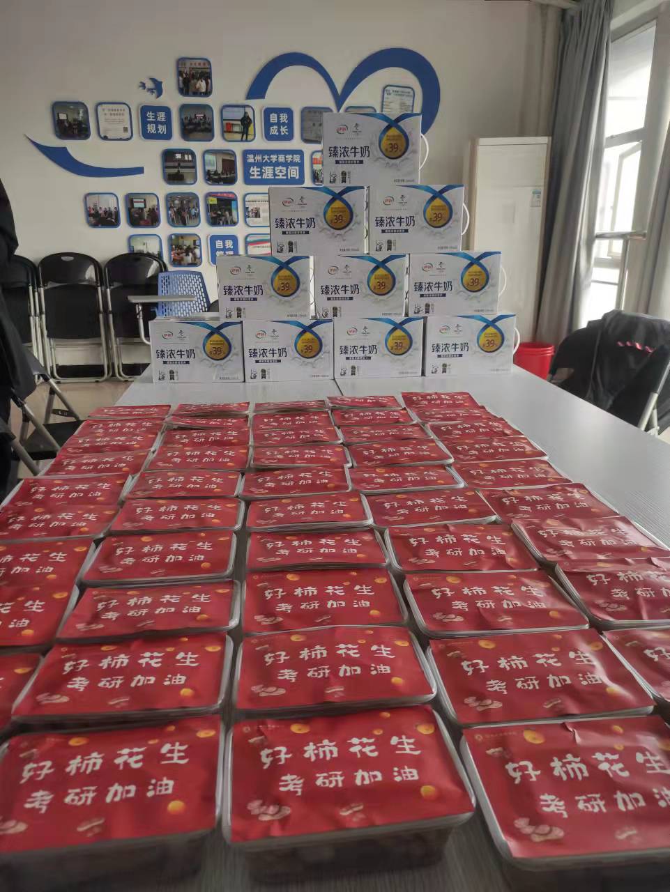 “后天就是你们迎接向更高山峰冲刺的时间,希望大家放松心情,调整好节奏,能够自如的应对考场,收获属于你们应该有的战果,非常期待同学们能成功上岸,心想事成。”3044永利集团公司党委书记郑彩莲为考研学子送上暖心祝福,并且精心挑选 “暖心加油包”,其中包括两样特别礼物——柿子和花生,寓意他们“好柿一定会花生”,马到成功。