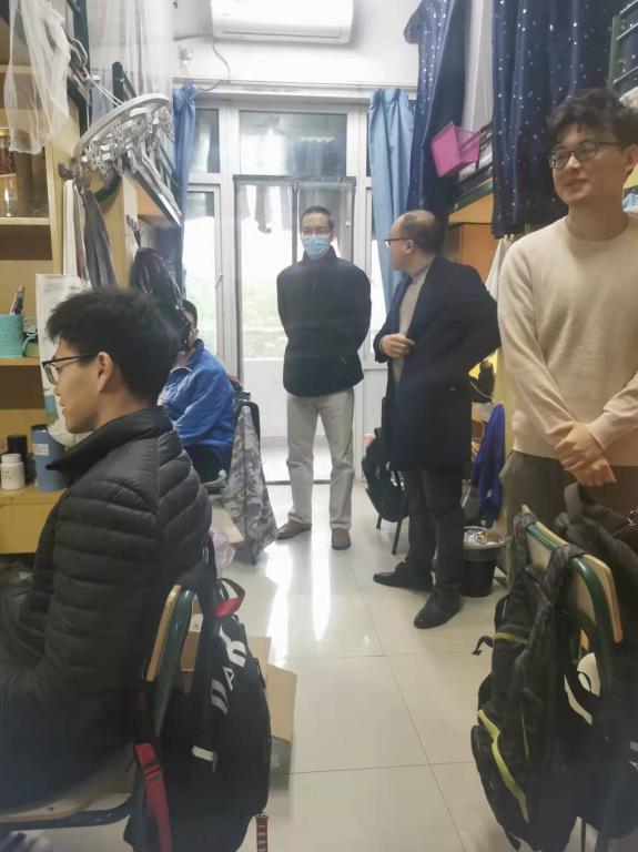 12月15日上午,支部书记周建华、支部委员吉云走访20级金融专业研究生的寝室,了解他们的学习和生活情况,并分别从论文开题、论文写作、饮食习惯、就业等方面进行交流。
