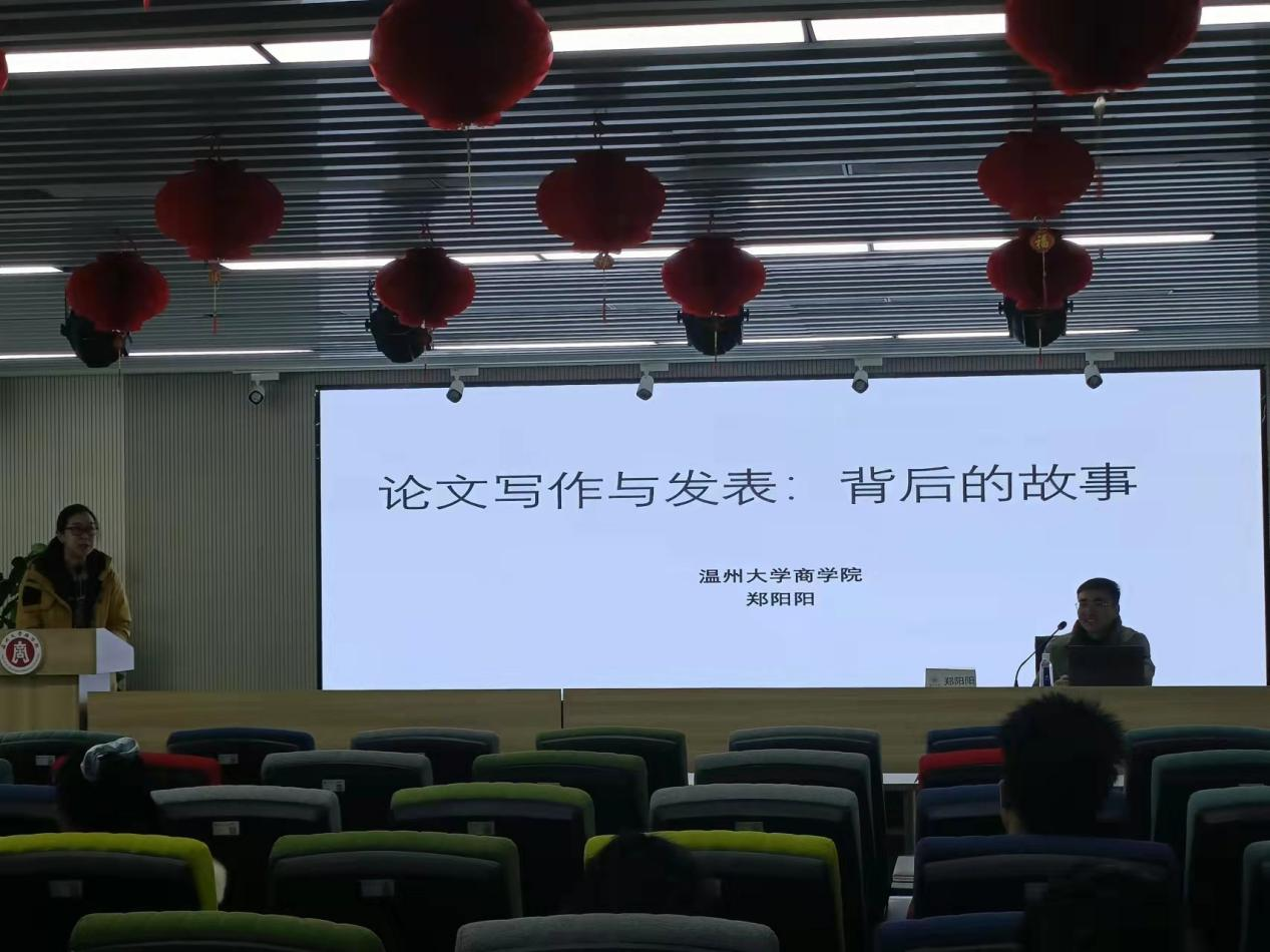 12月22日下午,支部教师党员郑阳阳在3044永利A226为21级全体研究生作《论文写作与发表背后的故事》讲座。郑阳阳作为主讲人,向员工们分享了自己的学术经历和心得体会,并就论文写作与发表提出相关建议。他指出论文是文学和美学的结合,基础稍差的同学可以通过学习提高文学素养,论文的格式和排版要规范美观。“骐骥一跃,不能十步;驽马十驾,功在不舍”,写论文不能一蹴而就,需要不断修改完善。