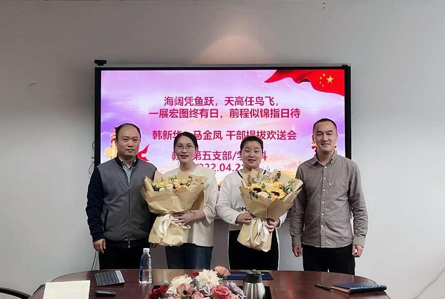 本次党日活动最后一个环节是欢送韩新华、马金凤两位同志调岗提拔。支部每位党员回忆了与两位老师的相处经历,并诚挚地为她们送上祝福语,公司党委副书记唐华和支部书记黄兴利代表支部为其献上鲜花。