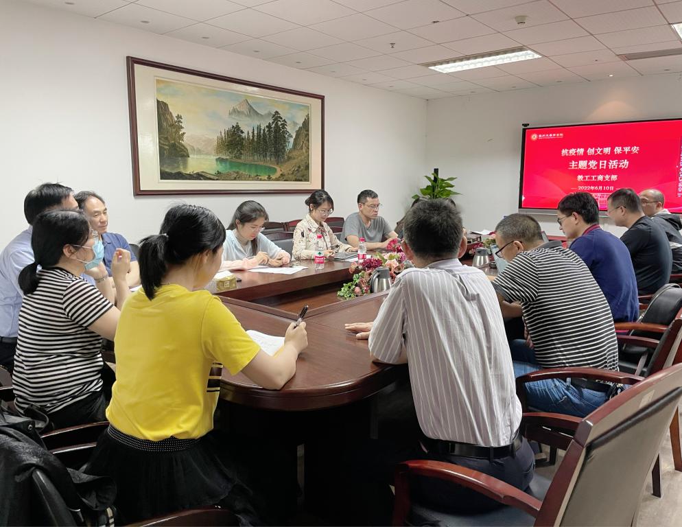 根据公司、公司工作总体部署,2022年6月10日下午,3044永利教工第三党支部在3044永利会议室A222举行“抗疫情、创文明、保平安”专题学习会,会议由支部书记龚军姣主持。此次会议,支部党员老师均积极参加,支部还邀请了工商系民主党派和非党员老师参加。