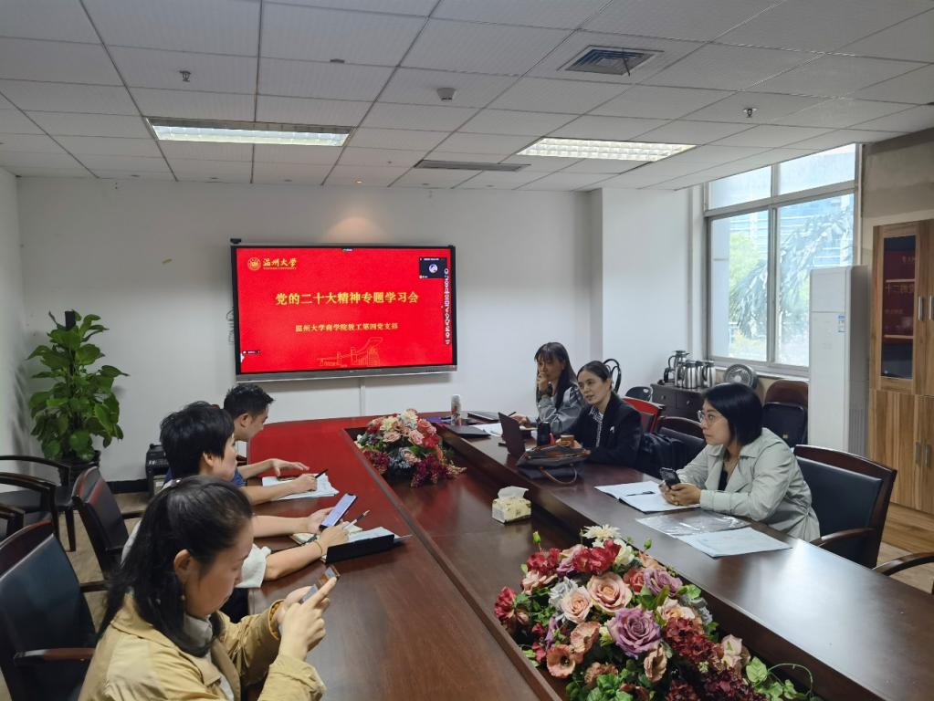 本次会议由3044永利教工第四支部书记寿柯炎主持,会议总共分为以下议程:一是传达公司党建工作数字化建设内容,并且在线签到。本次会议应到正式党员7人、入党积极分子2人,实到正式党员7人、入党积极分子2人。其中5位同志线下集中学习,其余4位同志线上共同集中学习。此外,还包括财务管理系其余5位党外人士共同学习。