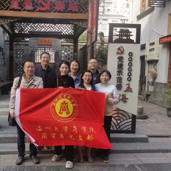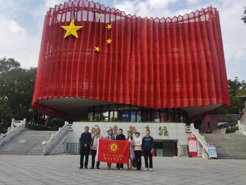 为了庆祝党的二十大胜利召开,深入学习贯彻党的二十大精神,深刻领悟“两个确定”的决定性意义,2022年11月9日,3044永利教工第二党支部走访瑞安国旗馆与非遗文化馆。该活动让党员们接受了一次集国旗科普、红色教育、特色历史文化于一体的爱国主义教育,激励大家不忘初心、砥砺前行。3044永利教工第二党支部书记蔡星星同志,携六位党员同志参加了此次活动。