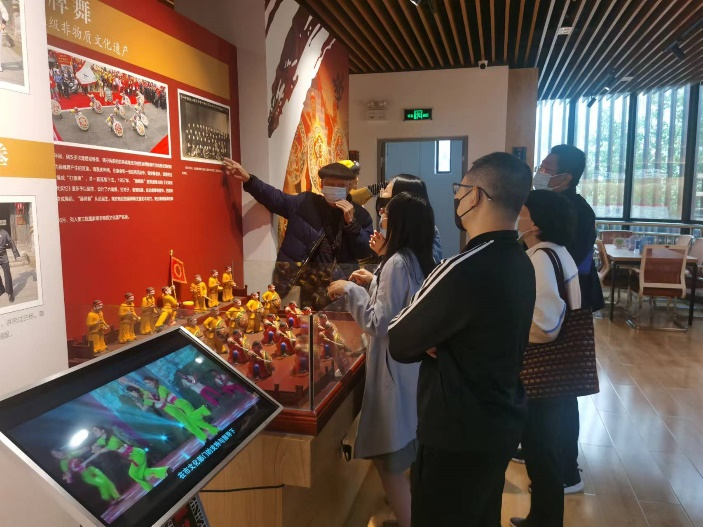 在讲解员的带领下,大家参观了中国活字印刷术、木活字印刷术、温州鼓词、藤牌舞、蓝夹缬技艺等项目。此外,通过触屏点阅,大家对温州鼓词、瑞安高腔、传统武术、四季八节民俗活动有了直观立体的了解。