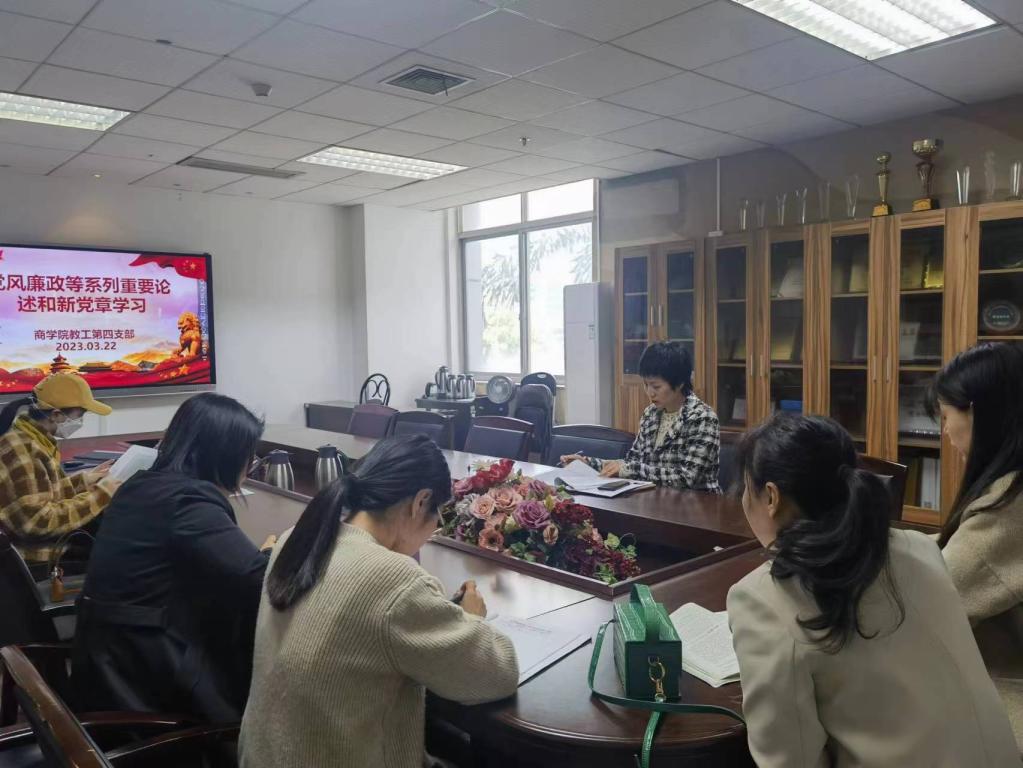 本次会议首先学习了“毛宏芳同志在2023年度全省教育系统会议上的讲话”内容;随后学习了“浙江省教育厅办公室关于印发《省委教育工委 省教育厅2023年工作要点》的通知”上的内容;三是学习了“2023年全省教育系统全面从严治党暨清廉公司建设推进会召开”等5篇理论内容;最后学习了新党章。